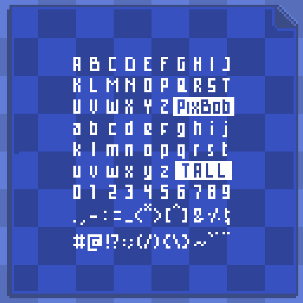 Also this font is suitable and easy to use in Aseprite and can also be used in pixel apps on iPad like Pixquare and Reseprite, to apply the font you just need to select the PixBob font and set the Size to 10, and multiples of 10 such as 20, 30, 40 etc. for a larger font size